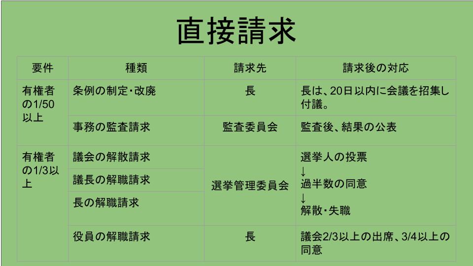 最後に、住民の参政権である直接請求について。1/50以上の署名でできる「条例制定・改廃」や「事務監査」は基本ですが、大切なのはその後のプロセスです。