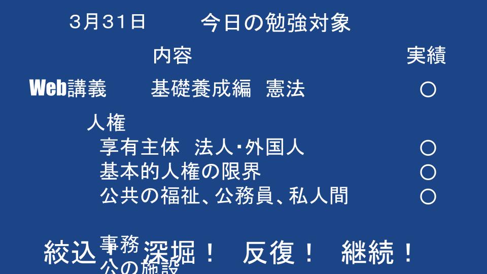 憲法は抽象的で掴みどころがないと思っていましたが、判例という「実際のドラマ」を通して学ぶと、ぐっと理解が深まります。明日もこの調子で頑張りましょう!